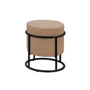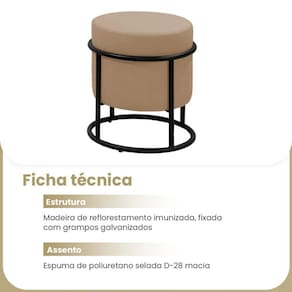 Puff Banqueta Decorativo Redondo Base de Ferro Moscow Linho Bege