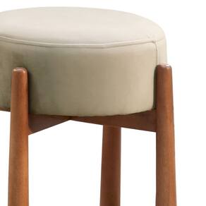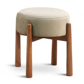 Puff Banqueta Lotus Luxo Madeira Maciça Bege