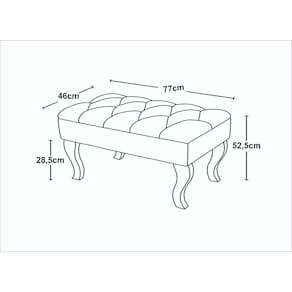 • Medidas: Altura: 52,5cm; Altura até os Pés: 28,5cm; Comprimento: 77cm; Largura: 46cm