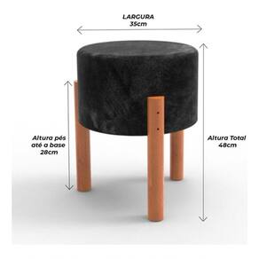 Puff Banquinho Decorativo Em Veludo Luxo Pés de Madeira
