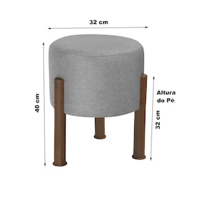 Descrição o Produto: Dimensões do produto montado. Altura: 40 cm Largura: 30 cm Profundidade: 30 cm Recomendação máxima de peso: até 80Kg. Contém: 1 Puff redondo, 3 pés palito de polietileno, kit de parafusos para montagen. O produto será entregue desmontado, é de inteira responsabilidade do cliente a montagem do produto. Produto acompanha manual de montagem. Marca: Pc Móveis