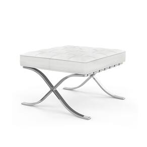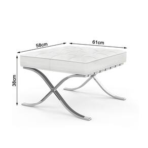 Características Tipo: Puff Modelo: Barcelona Tecido: Couro Sintético Cor: Branco Base: Cromado Estrutura resistente Uso em ambientes internos