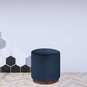 Puff Barcelona Decorativo com Veludo Azul e Base Madeira