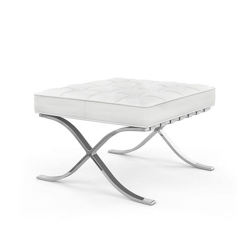 Características Tipo: Puff Modelo: Barcelona Tecido: Couro Sintético Cor: Branco Base: Inox Estrutura resistente Uso em ambientes internos