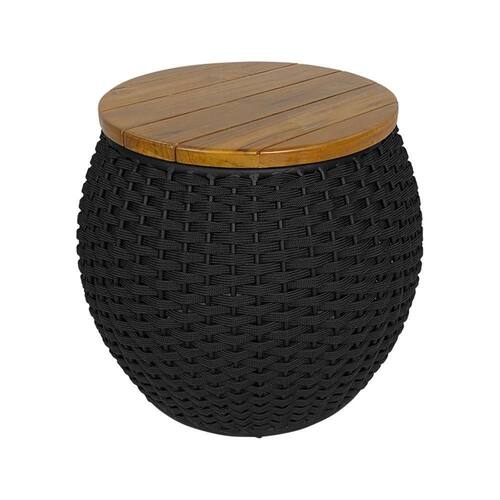 AS IMAGENS SÃO MERAMENTE ILUSTRATIVAS E PODEM SOFRER VARIAÇÕES DE COR E PEQUENOS DETALHES DE ACORDO COM O SEU MONITOR, ILUMINAÇÃO DO AMBIENTE E ATÉ MESMO A SUA PERCEPÇÃO VISUAL.Puff Barril AlumÃnio Tampo Madeira Corda NÃutica Preto