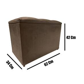 - Assento: Espuma, ideal para o conforto das crianças.- Revestimento: Tecido suede aveludado, sofisticado e fácil de limpar.- Funcionalidade: Baú interno para guardar brinquedos e organizar o quarto.- Tamanho: 34cm (largura), 62cm (comnto), 42cm (altura).