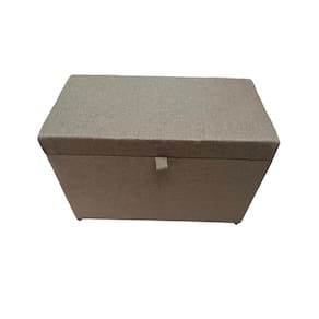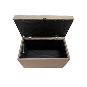 Puff Baú Estofado Retangular C/ Pistão á Gás Em Linho - Marrom Claro
