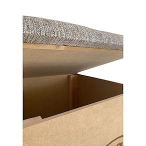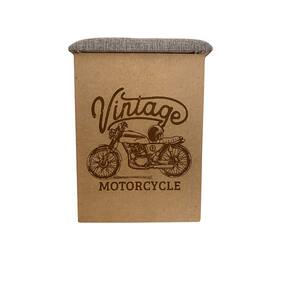 Item: PUFF BAÚ NÃO É SEGREDO MOTO LINHO MARROM MESCLADO 34x32x45