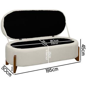 Puff Baú Organizador de Sapatos Thor Para Cama King Size Bouclé O Puff Baú Organizador de Sapatos Thor para cama King Size é a combinação perfeita de funcionalidade e estilo, proporcionando uma solução prática e elegante para o seu quarto. Este móvel versátil não só oferece um espaço confortável para se sentar, mas também adiciona um toque sofisticado à sua decoração. CARACTERÍSTICAS DO PRODUTO: - Estofamento: Espuma D26; - Revestimento: Bouclê; - Estrutura: Madeira de eucalipto de reflorestamento;- Pés em madeira maciça com pintura UV;- Modelo orgânico (curvo), tendência nos lares e comércios! DIFERENCIAS: - Produto de alta qualidade; - Design moderno;- Costura resistente; - Estrutura segura;- Para a limpeza, recomendamos utilizar pano levemente úmido e detergente neutro. DIMENSÕES: Largura: 195 cmAltura: 35 cm Profundidade: 50 cm Peso: 16 kg.VOLUMES, MONTAGEM E GARANTIA:- Uma unidade por embalagem;- O produto chegará montado, sendo necessário apenas parafusar os pés (acompanha os parafusos);- Garantia do fabricante: até 90 dias corridos após o recebimento, contra defeitos de fabricação; INFORMAÇÕES IMPORTANTES:- A entrega do produto é realizada em todo território nacional, até onde as rodovias alcançam.- Objetos decorativos que aparecem na foto não acompanham o produto;- Pode haver diferença de tonalidade entre a imagem e o produto real, por conta de lote de tecido, tratamento de imagens e a calibração de cores do seu monitor;- Por se tratar de estofado as medidas podem ter uma variação em até 3 cm;- Confira as dimensões do produto e certifique-se de que passará normalmente por elevadores, portas, escadas e/ou corredores de sua residência, já que nossa entrega não inclui a subida de lances de escada, ou o içamento de produtos; Marca: Não Informado