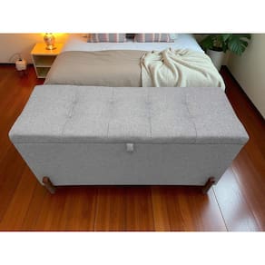Estrutura em MDF resistente Tecido Linho Premium e elegante Espuma D28 de 5 cm para mais conforto Tampa com dobradiças reforçadas Medidas: 100 cm x 36 cm x 47 cm Decora e organiza qualquer ambiente Marca: Dell Móveis