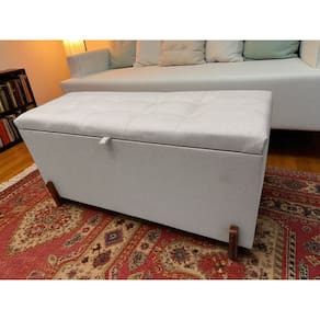 Estrutura em MDF resistente Tecido Linho Premium e elegante Espuma D28 de 5 cm para mais conforto Tampa com dobradiças reforçadas Medidas: 100 cm x 36 cm x 47 cm Decora e organiza qualquer ambiente Marca: Dell Móveis