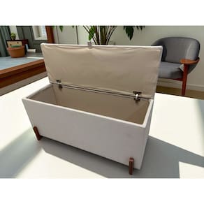 Deixe seu ambiente mais bonito e organizado! Puff baú fabricado em MDF resistente, medindo 100x36x47 cm. Revestido em Linho Premiu, com espuma de 5 cm densidade 28 para mais conforto. Conta com dobradiças reforçadas, iguais às usadas em armários. Fabricado com pés em madeira. Ideal para guardar objetos e dar um toque de charme à decoração!