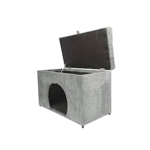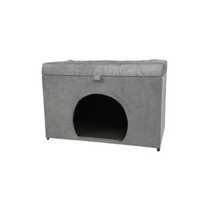 Puff Baú Pet Casa P/ Cachorros E Gatos Em Suede - Cinza