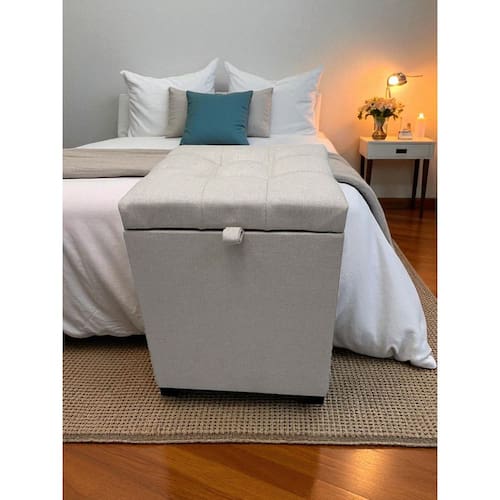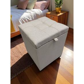 Puff baú fabricado em MDF resistente, medindo 36x36x47 cm. Revestido em Linho Premiu, com espuma de 5 cm densidade 28 para mais conforto. Conta com dobradiças reforçadas, iguais às usadas em armários.