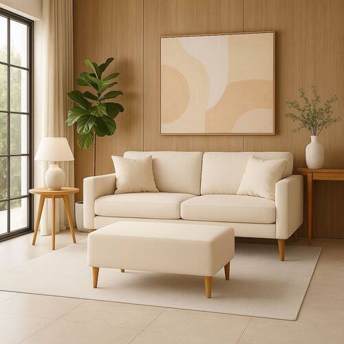O Puff Madri Sued Bege Claro traz conforto visual e tátil. Seu tecido macio é ideal para ambientes neutros e sofisticados.