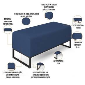 Pensando na praticidade do seu dia-dia, o Puff Decorativo Sala de Estar Cléo W01 Base de Ferro 90 cm Suede Azul Marinho- Lyam Decor se faz perfeito para a sua ambientação!! É extremamente confortável, ideal para quem procura por Modernidade e beleza embutidos num único produto. Estruturado com espuma macia e de alta densidade e revestimento de excelente qualidade, além de seus belos pés de metal que arrematam muito bem toda a composição deixando-o ainda mais Moderno.