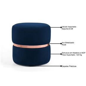 Puff Decorativo Com Cinto Rosê Round B-304 Veludo Azul Marinho - Domi Convenhamos que não há nada melhor do que unir conforto e sofisticação em um só lugar, não é mesmo? Portanto, o Puff Decorativo Com Cinto Rosê da Domi é a escolha certeira pra quem busca os dois!Além de ser cheio de charme, esse complemento conta com design diferenciado e exclusivo, estrutura de qualidade, pois é feita em madeira de eucalipto, cinto metalizado e acabamento em veludo que garante realçar qualquer sala de estar.