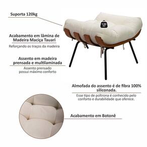 A decoração "clean" caiu no gosto de muitos decoradores e essa linda cadeira conseguiu unir esse conceito com sustentabilidade à um design que foi pensado para anatomia/ergonomia. Design, conforto e certificado de 100% de qualidade na mesma peça é o que não falta. Acabamento dos Pés: Pintura eletrostática Ambiente Principal: Sala de Estar codigo_ean: 7900288199386 Cor: Preto/Branco Cor do Produto: Preto/Branco Escala de Brilho: Semi-Brilho Itens Inclusos: 1 Puff Linha ou Coleção: Costela Manual de Especificação Técnica: https://product-hub-prd.madeiramadeira.com.br/642062530/documents/4ef65139-c276-4bf9-bc31-193e1e771a183090178585117532269446748.pdf Manual de Montagem e Instalação: https://product-hub-prd.madeiramadeira.com.br/642062530/documents/aa66f2fa-e736-42aa-82f6-a5343f2626b93090177585117532269357923.pdf Marca: Espresso Móveis Material da Estrutura: Metal Material dos Pés: Ferro Necessita Montagem: Não Origem do Produto: Nacional Peso: 11 kg Possui Baú: Não Possui Pés: 04 Possui Rodízio: Não Recomendações de Uso, Manutenção e Limpeza: Para manter seu móvel novo por muito mais tempo, evite locais úmidos, mantenha-o distante de líquidos. Para limpá-lo com segurança utilize uma flanela seca sem produtos abrasivos, que por sua vez desgastam o produto. Suporta Até (kg): 120 kg