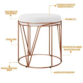 Divertido, confortável e despojado, são apenas uns dos adjetivos que podemos citar para o Puff Decorativo Aramado Bronze Zaya L02 Corano Branco - Lyam Decor, é ideal para você que busca por elegância e praticidade em sua decoração! Dispõe de estrutura aramada com design ornamentado e assento estofado com revestimento de excelente qualidade.