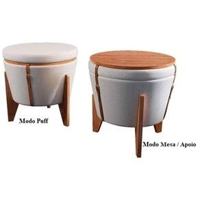 Puff Decorativo Baú Flex Tampo Para Mesa Centro Linho Claro