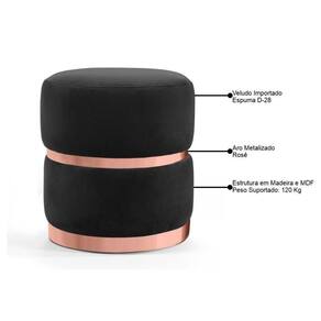 Color: Preto | ProductWarranty: 90 dias após o do produto | OriginCountry: | Requere montagem: Sim | Material: MDP 15 mm | ProductInstructions: Produto para uso em ambiente interno, nao devendo ficar exposto ao sol, calor e umidade excessivos. | ColorFamily: Preto | ColorSimple: Preto | Gênero: Unisex | Manual: Sim | Origem: | SupplierSimpleName: Puff Decorativo Com Cinto e Aro Rosê Round C-300 Veludo Preto - Domi | MaterialFamily: MDP 15 mm | ProductHeight: 45 | ProductWidth: 40 | ProductLength: 40 | ProductWeight: 8 | SizeDescription: 45 x 40 x 40 cm | AssemblyRequired: Sim, sugerimos a contratação do nosso de montagem (para os CEPs em que o está dispon | OriginState: PR | Marca: Domi | Tipo de Garantia: Fabricante | Peso Suportado: 100 kg | ColorSupplier: Preto | Altura: 41 cm | Peso: 8 kg | Largura: 40 cm | Profundidade: 40 cm | Cor: Preto