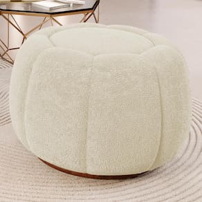 Puff Decorativo Estilo Abóbora Orgânico Shell Bouclê Bege - Abmaza