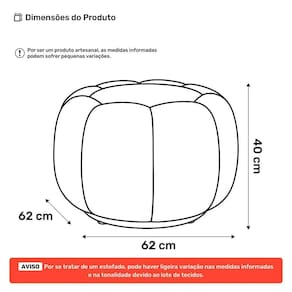 ** POR SE TRATAR DE UM ESTOFADO, AS MEDIDAS PODEM SOFRER UMA VARIAÇÃO DE ATÉ 3 CM.