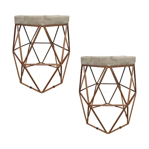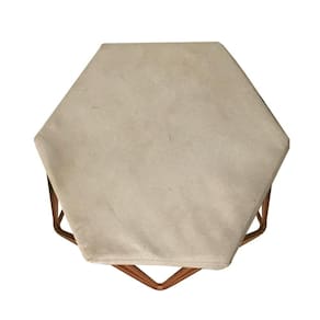 Puff Decorativo Hexagonal Aramado Cobre Suede Bege