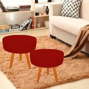 Puff Decorativo Lavinia Suede Pes Castanho Vermelho