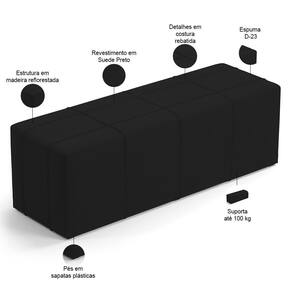 Puff Decorativo Living Sala De Estar 195 Cm Roma W01 Suede Preto - Lyam