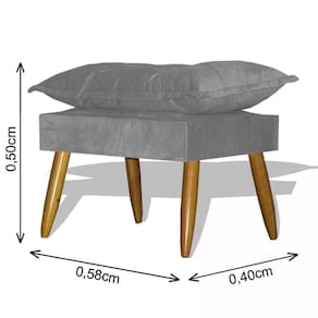 - Puff Retangular; - Estrutura em Madeira MDF - Acabamento Tecido Suede - Revestimento em fibra siliconada - 04 Pés palito; - Sistema de montagem: Parafusos.
