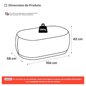 ** POR SE TRATAR DE UM ESTOFADO, AS MEDIDAS PODEM SOFRER UMA VARIAÇÃO DE ATÉ 3 CM.