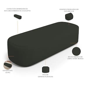 Características: Estrutura em madeira de reflorestamento de eucalipto. Revestimento em Linho na cor Verde Musgo de alta qualidade. Assento com espuma D-26. Peso suportado: Até 120 kg. Pés em sapatas plásticas.
