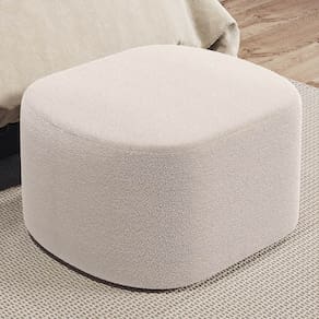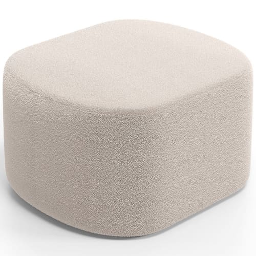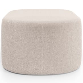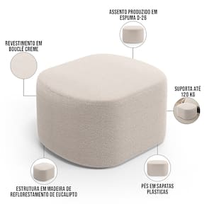 Características: Estrutura em madeira de reflorestamento de eucalipto. Revestimento em Bouclê na cor Creme Assento com espuma D-26. Peso suportado: Até 120 kg. Pés em sapatas plásticas.