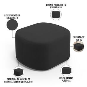 Características: Estrutura em madeira de reflorestamento de eucalipto. Revestimento em Suede na cor Preto de alta qualidade. Assento com espuma D-26. Peso suportado: Até 120 kg. Pés em sapatas plásticas.