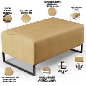 Pensando na praticidade do seu dia-dia, o Puff Decorativo Sala de Estar Cléo W01 Base Ferro 90cm - Lyam Decor se faz perfeito para a sua ambientação!! É extremamente confortável, ideal para quem procura por Modernidade e beleza embutidos num único produto. Estruturado com espuma macia e de alta densidade e revestimento de excelente qualidade, além de seus belos pés de metal que arrematam muito bem toda a composição deixando-o ainda mais Moderno. Possuindo diferentes funções, pode ser posto em salas de estar, garantindo assentos extras, no quarto, como um apoio ou até mesmo recamier aos pés da cama, em closets, integrando ambientes, dentre outras maneiras. Com certeza vai harmonizar e embelezar ainda mais a decoração do seu lar.