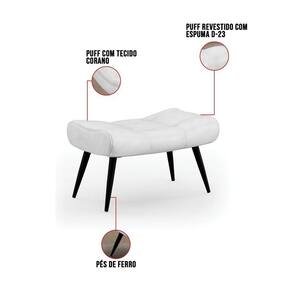Esse Puff Decorativo é maravilhoso, aconchegante e robusto, feito com madeira de eucalipto e espuma D23 garantindo a qualidade e durabilidade do produto, tecido sintético de alta qualidade e pés de ferro que dá um toque retrô e asseguram sua estabilidade. É um Puff Confortável que tem um formato curvo e 45 cm de altura, sendo ideal para apoiar os pés ou servir como assento extra. O detalhe em capitonê dá um toque de sofisticação e requinte ao seu ambiente, harmonizando com diversos estilos de decoração.