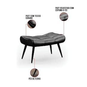 Está precisando complementar a decoração da sua casa, o Puff Decorativo Para Sala de Estar Pés Palito Lord Sintético Preto, da Ibiza é ideal, confira!