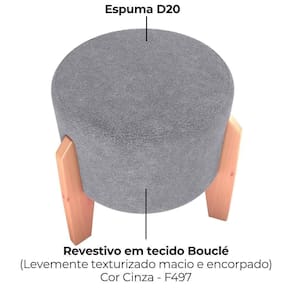 Puff decorativo Luxo, design moderno com um toque de sofisticação para o seu ambiente. Estrutura em Madeira de Eucalipto (de reflorestamento) e MDF, estofado com espuma D20 e revestido em Bouclé (levemente texturizado macio e encorpado). Seu diferencial está nos pés em madeira maciça, com formato geométrico que traz estabilidade e estilo único. Suporta até 110 kg. Este produto será entregue em 01 volume.