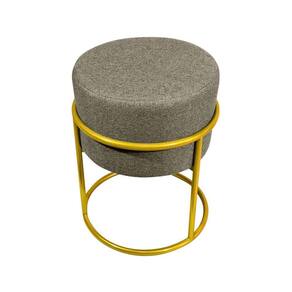 AS IMAGENS SÃO MERAMENTE ILUSTRATIVAS E PODEM SOFRER VARIAÇÕES DE COR E PEQUENOS DETALHES DE ACORDO COM O SEU MONITOR, ILUMINAÇÃO DO AMBIENTE E ATÉ MESMO A SUA PERCEPÇÃO VISUAL.Puff Decorativo Redondo Base De Ferro Dourada Tecido Linho Bege