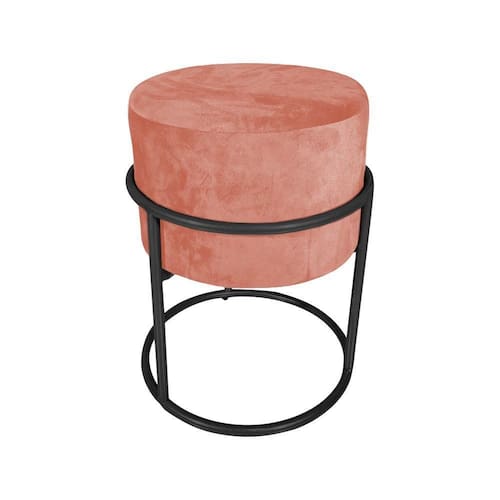 AS IMAGENS SÃO MERAMENTE ILUSTRATIVAS E PODEM SOFRER VARIAÇÕES DE COR E PEQUENOS DETALHES DE ACORDO COM O SEU MONITOR, ILUMINAÇÃO DO AMBIENTE E ATÉ MESMO A SUA PERCEPÇÃO VISUAL.Puff Decorativo Redondo Base De Ferro Preta Tecido Veludo RosÃ