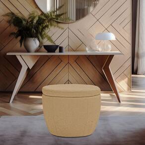 Puff Decorativo Redondo Kaira Bouclé Camel - Nexta Casa