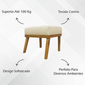 Estrutura em madeira de eucalipto de reflorestamento, garantindo resistência e durabilidade. Revestido em material sofisticado, que facilita a limpeza e traz modernidade ao és de madeira, agregando estabilidade e um design contemporâneo. Suporta até 100 kg, oferecendo e funcionalidade.