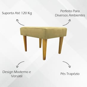 Fabricado com estrutura em madeira de eucalipto de alta qualidade, este puff alia resistência e durabilidade. O revestimento em tecido suede oferece um acabamento refinado, enquanto o design robusto do pé em formato trapézio garante estabilidade e charme adicional. Com capacidade para suportar até 100 kg, o Puff Decorativo Charme combina beleza, conforto e funcionalidade em uma peça indispensável para sua casa.