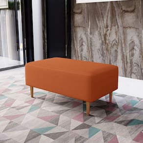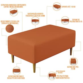 Pensando na praticidade do dia-dia, o Puff Decorativo Sala de Estar Cléo W01 Pés Palito 90 cm Tecido Terracota - Lyam Decor se faz perfeito para a sua ambientação!! É extremamente confortável, ideal para quem procura por funcionalidade e beleza embutidos num único produto. Estruturado com espuma macia e de alta densidade e revestimento de excelente qualidade, além de seus belos pés palito que arrematam muito bem toda a composição deixando-o ainda mais elegante.