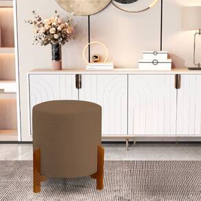 Puff Decorativo Thor 3 Pés Base em Madeira Maciça - Veludo Marrom