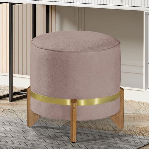 Aproveite e leve já o seu puff de luxo estofado em Bouclé com detalhes dourados, disponível nas melhores lojas de móveis e decoração!