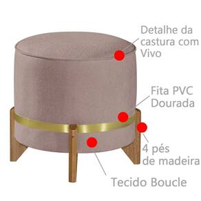 Design moderno e sofisticado, perfeito para diversos estilos de decoraçãoRevestimento em tecido Bouclé, macio, aconchegante e de alta durabilidadeEspuma D26, garantindo conforto e resistênciaEstrutura em madeira de eucalipto, sinônimo de qualidade e sustentabilidadePés de madeira maciça, que oferecem estabilidade e resistênciaDetalhe dourado em fita PVC, agregando requinte e sofisticaçãoVersátil e funcional, podendo ser utilizado como assento, apoio para os pés ou peça decorativaIdeal para Ambientes Elegantes e Aconchegantes