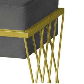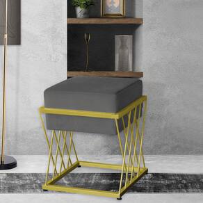 Puff Decorativo Tróia Base Gold Veludo Cinza - Montanaris Decor