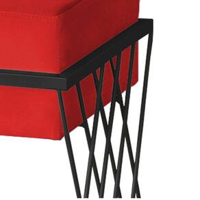 Puff Decorativo Tróia Base Preta Veludo Vermelho - Montanaris Decor